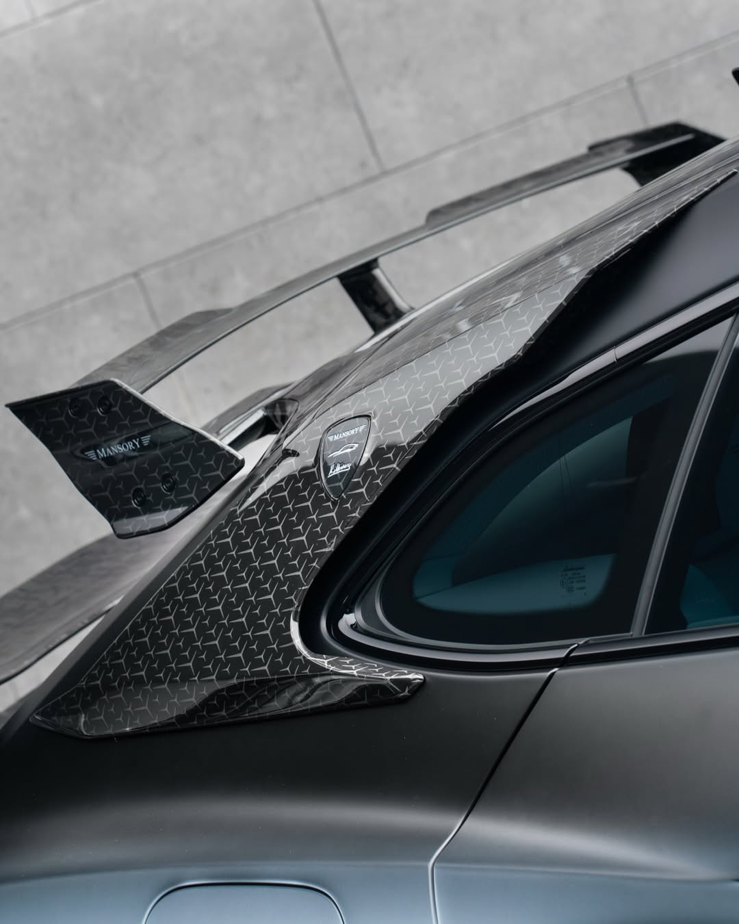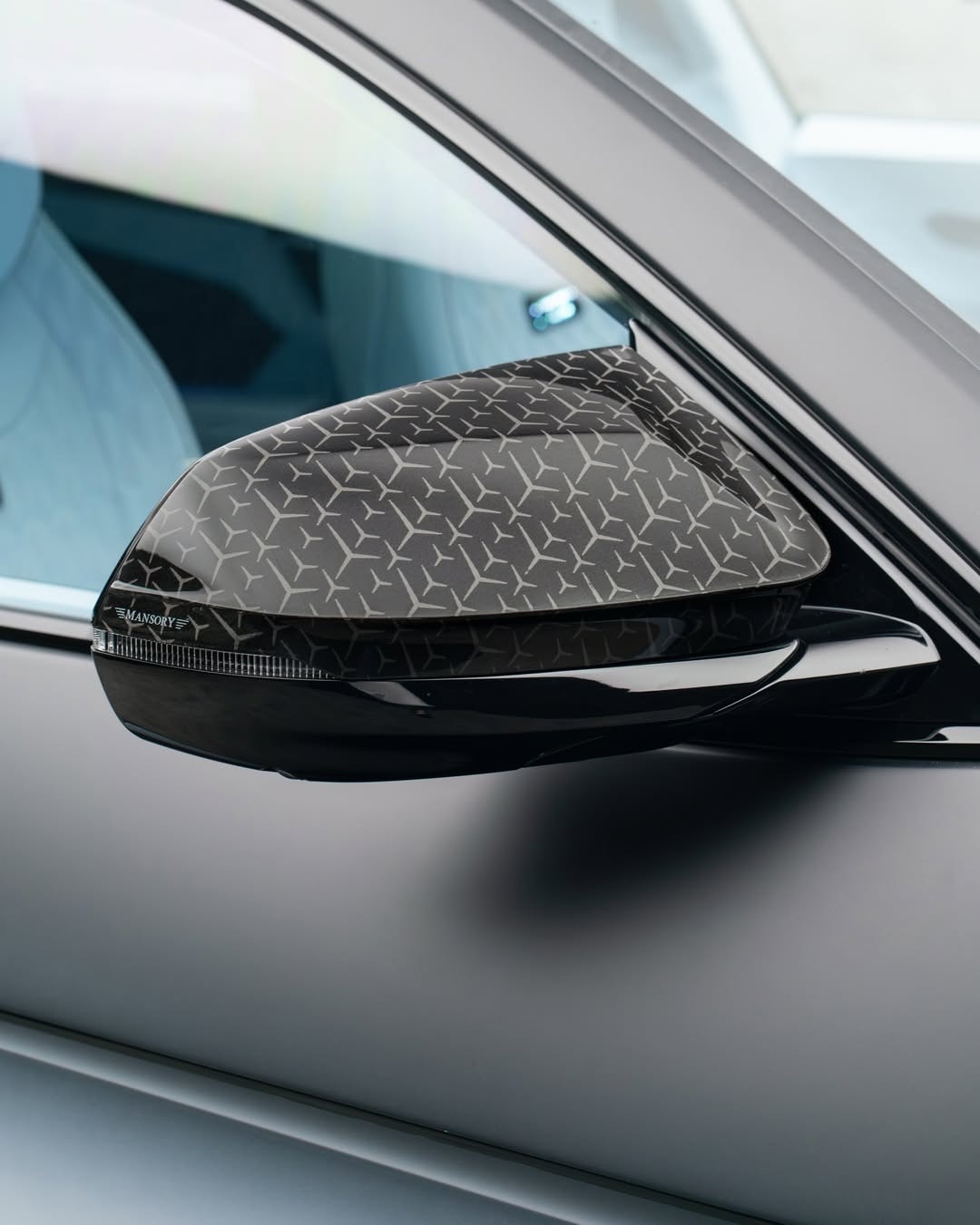 Bodywork along the sides follows the same direction. Wider fenders expand the silhouette, and side skirts connect the arches with deeper surfaces. Door mirror housings come from Mansory’s own catalog and carry star motifs integrated into the finish.